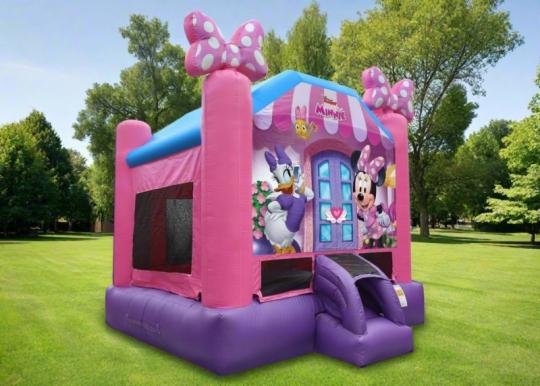Join Minnie Mouse and Daisy Duck at the Happy Helper Headquarters with our Minnie Mouse Bounce House! This vibrant inflatable offers plenty of space for up to five guests to bounce, skip, and play alongside their favorite characters.